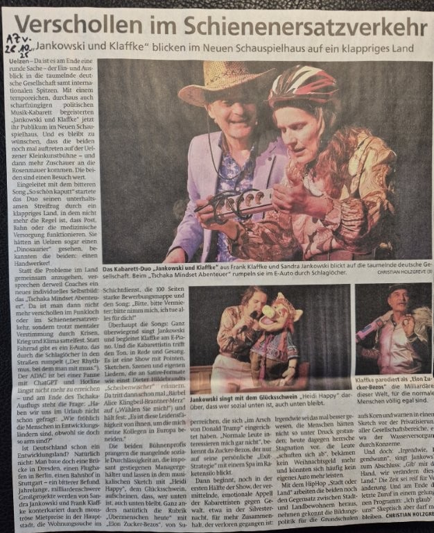und davon bekommt das Neue Schauspielhaus 1440,00 € ab. Wir danken herzlich Expert-Hanse-Verbund Uelzen und Peter Jäckel, Kommunikationssystem, Uelzen für ihre Entscheidung, das Theater an der Rosenmauer einmal mehr großzügig zu unterstützen. Hier der Artikel der AZ vom 03.09.2025: