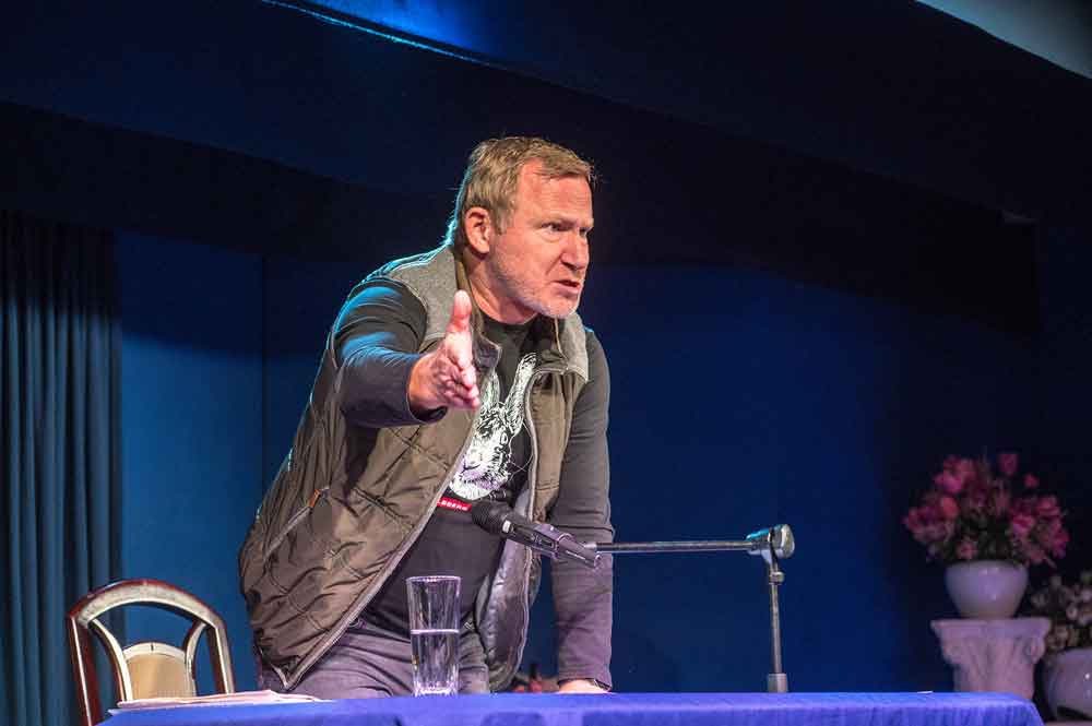 Seit vielen Jahren kennt man Roland Jankowsky aus verschiedenen TV-Formaten. Wenn es zeitlich passt, verschlägt es ihn immer mal wieder auf die Bühne. Es ist nicht zuletzt sein, manchmal etwas sonderbarer Kommissar Overbeck, der die ZDF-Reihe „Wilsberg“ in den Kultstatus erhob, und sich einer großen, immer noch wachsenden Fangemeinde erfreut, trotz der vielen Fettnäpfchen, in die er tritt. In seiner Lesung lässt er diese jedoch tunlichst aus.
